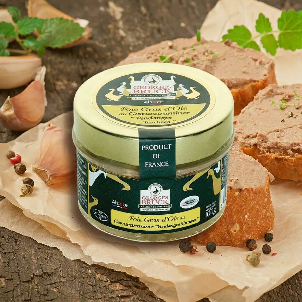 法國阿爾薩斯頂級鵝肝醬佐經典晚收葡萄酒,使用100%鵝肝,結合溫柔精心的手工技術與獨特的家族配方,使用了在地的格烏茲塔明那白葡萄酒,芬芳濃郁的成熟果香與絲滑細緻的鮮美鵝肝同時在舌尖縈繞,入口即化