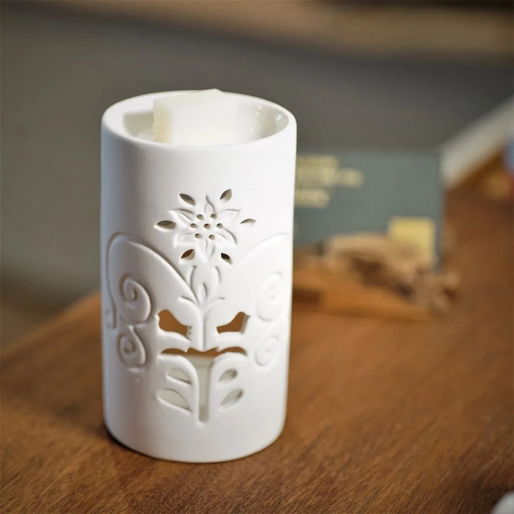 燭光搖曳的昏黃,溫暖光線從鏤空的雕花中投射出迷離光影,真是無可救藥的浪漫。香氛蠟塊的香氣穩定,可以燃燒得比香氛蠟燭更久、更濃,是浪漫又實惠的好選擇。