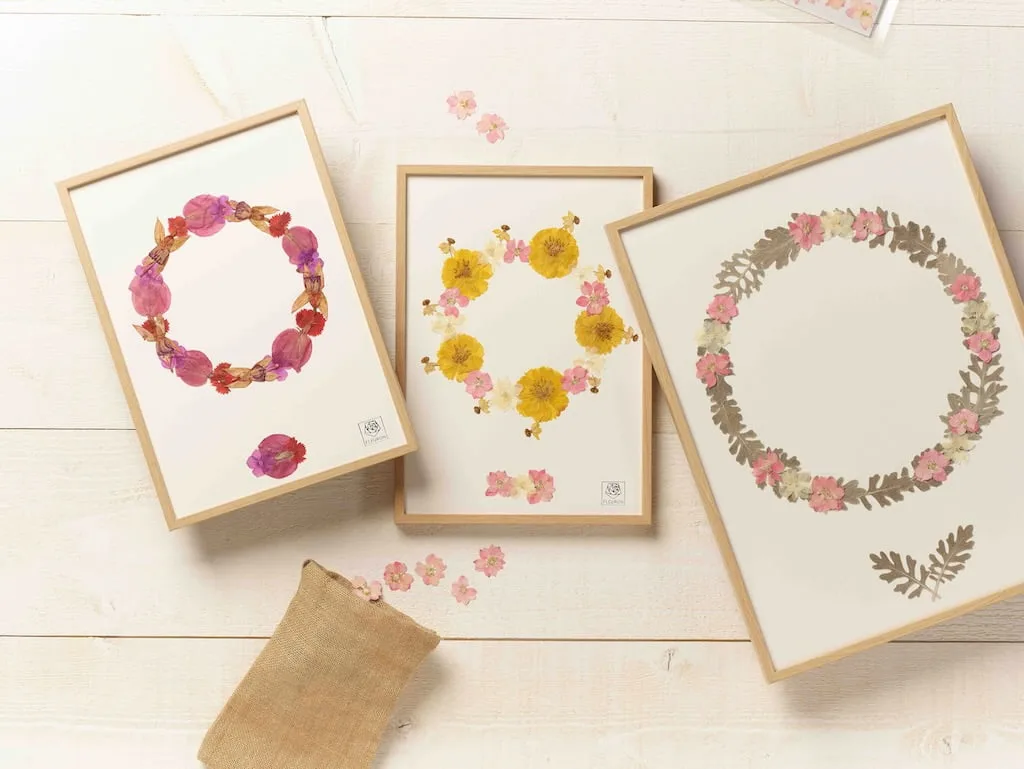 每幅框花就像是一件珠寶,從採摘、壓製、到乾燥,都需要仔細把握所有細節,才能保留花朵們與眾不同的姿態,讓每一片花瓣經過巧妙的排列組合,在白紙上創造出一幅清新雅緻、獨一無二的畫面。
