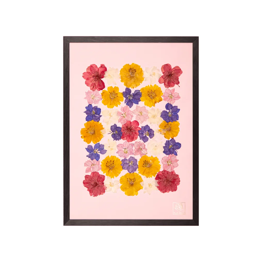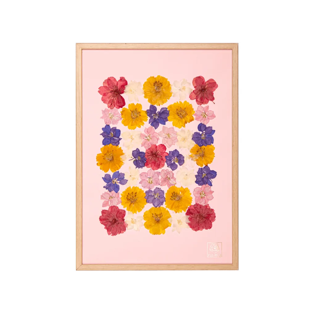 「落英紛紛」(Fleuron)是Claire與Antoine兩位大自然愛好者創立的品牌,他們注重環境友善與原料品質,不僅跟隨季節揀選在地鮮花,還採用FSC認證 (森林管理委員會)的德國製造鋁框架、義大利生產的紙張和包裝盒,連燙金標誌都是一張張純手工製作。