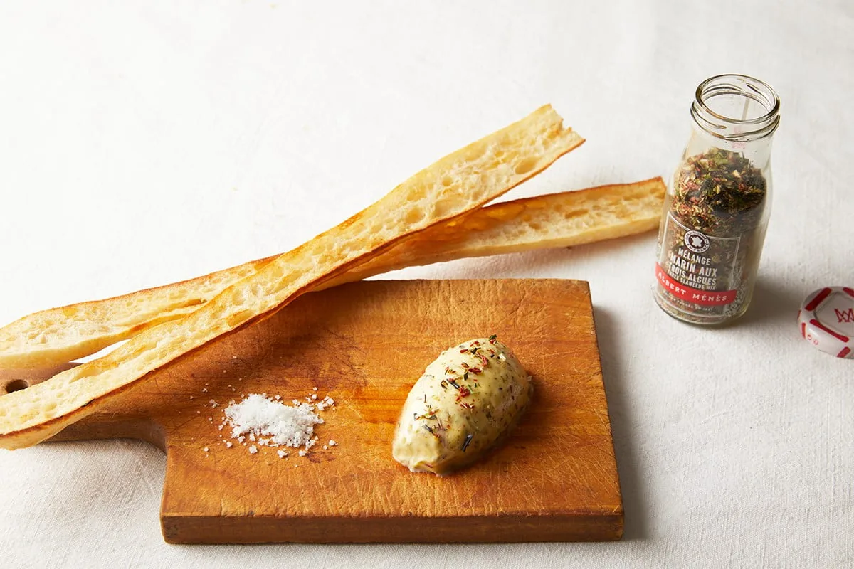 Albert Ménès 精心打造這款獨一無二的「海洋三藻混合香料」,由布列塔尼沿岸採集的三種海藻──海萵苣、紫菜與紫紅藻──結合脫水番茄片調和而成,完美融合海洋的鮮味與番茄的甘甜,呈現清新而層次豐富的風味。
