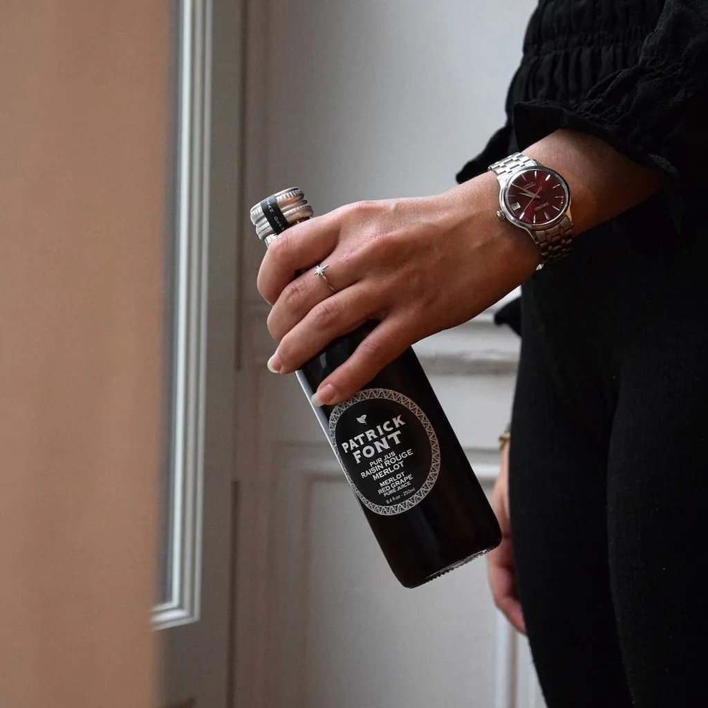 美洛紅葡萄汁(Merlot)嚴選法國西南部Gallic自有農莊的原料,厚實濃郁的葡萄伴著櫻桃與黑醋栗的酸甜香氣,口感圓潤不爭搶,前中後味具層次而有延續性。酒紅色的果汁無論是視覺上還是口感上都有偽喝酒的小確幸。