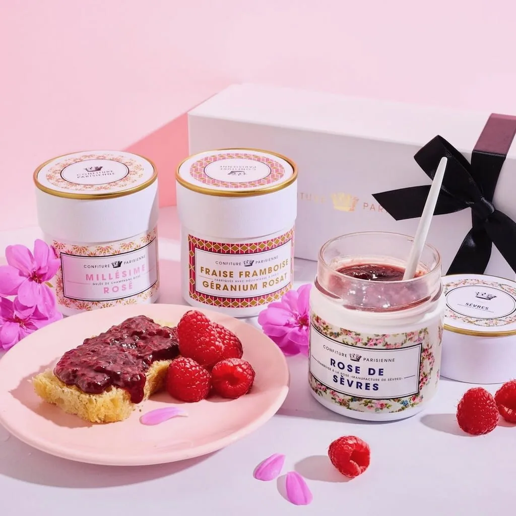 來自巴黎西南方、座落於巴黎與凡爾賽之間的小鎮 Sèvres,這款果醬選用當地盛開的玫瑰與飽滿覆盆子調製而成,交織出如晨曦中花園般的芳香與果香。玫瑰的優雅與果實的酸甜,共譜一首屬於法式手工藝的溫柔情詩。