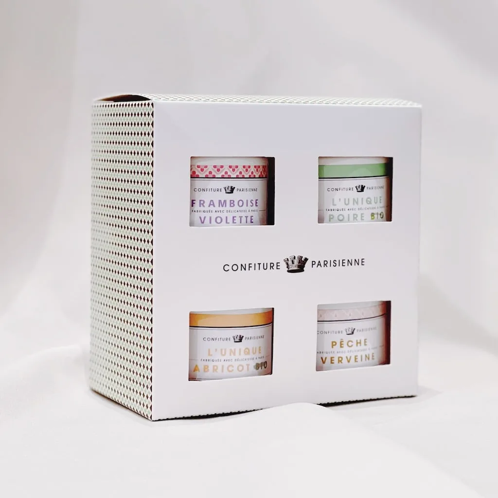獨一無二的杏桃- 杏桃、蔗糖、檸檬、柑橘果膠 紫羅蘭覆盆子- 法國覆盆子、蔗糖、檸檬、柑橘果膠、天然紫羅蘭香料 馬鞭草蜜桃- 水蜜桃、蔗糖、檸檬、馬鞭草、柑橘果膠 薰衣草杏桃- 杏桃、蔗糖、檸檬、柑橘果膠、薰衣草