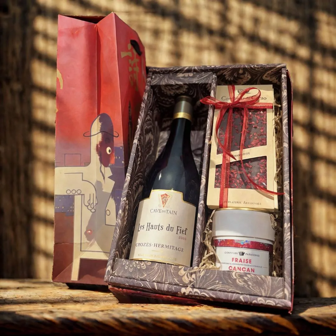 - 750ml葡萄酒 + 250g 果醬 + 果乾巧克力